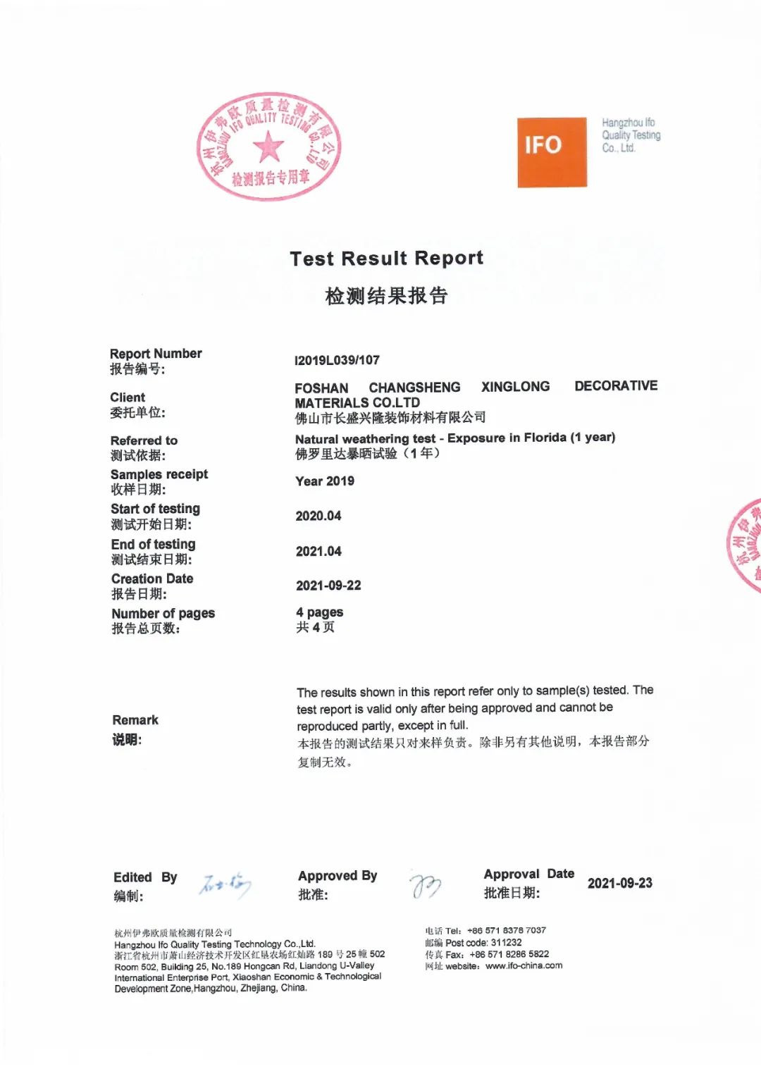 熱烈慶祝長盛興隆成為中國首批通過歐盟戶外耐候木紋標(biāo)準(zhǔn)QUALIDECO認(rèn)證,并通過美國佛羅里達(dá)洲曝曬試驗。